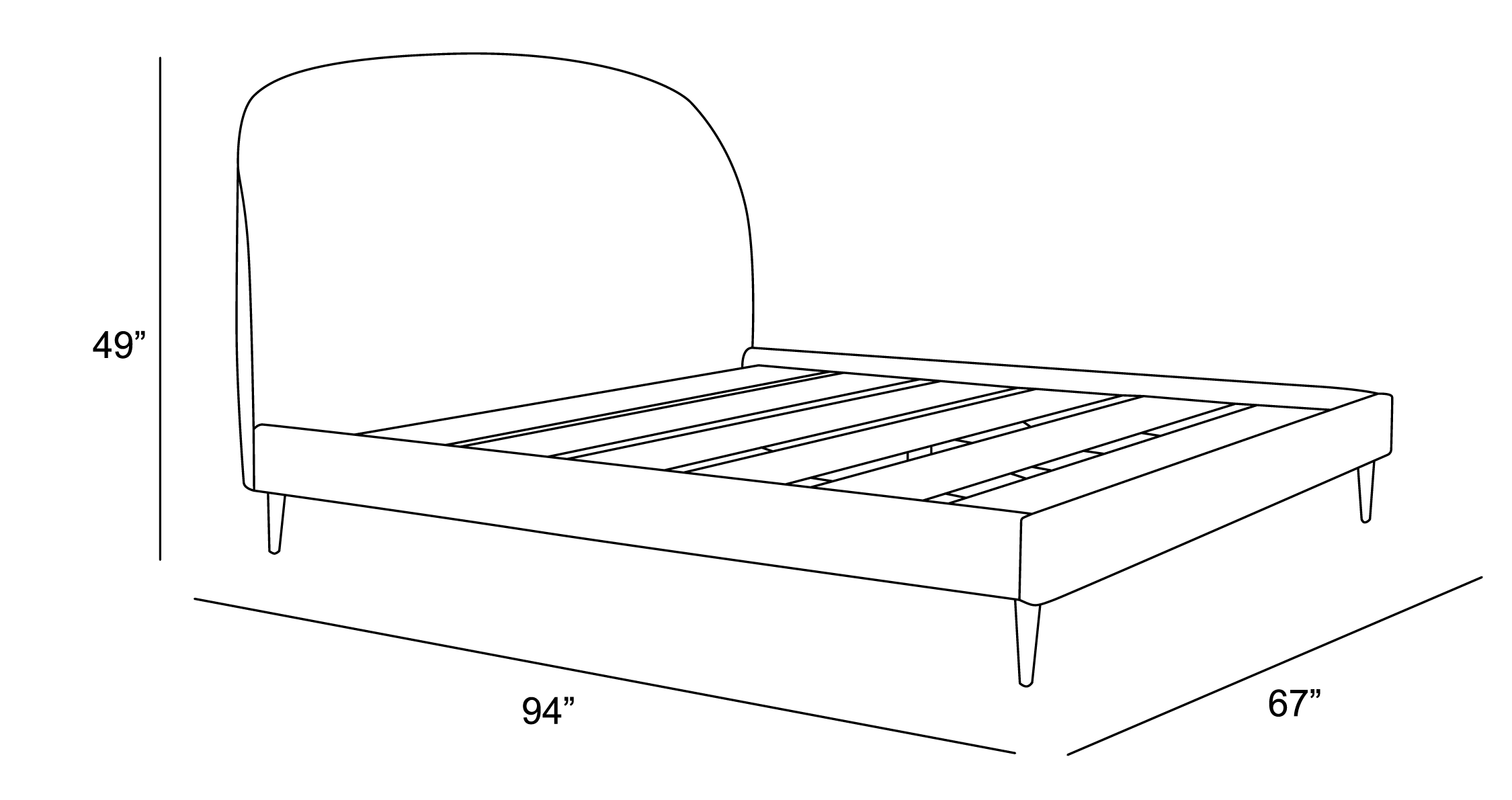 Elevate your bedroom with our exquisite Queen Bed featuring a dust blue velvet upholstery, complemented by wood legs with brass caps